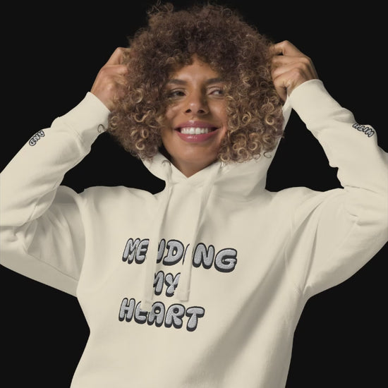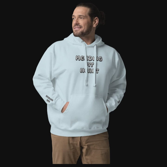 Wrap yourself in warmth and self-compassion with the Echo of Ease Heart Mender Hoodie. Embroidered over the chest is the gentle affirmation "Mending My Heart," a reminder of your strength and resilience. On the left wrist, "With Love," and on the right, "And Patience," are stitched with care, encouraging you to embrace your healing journey with kindness and understanding. Made from soft, comforting fabric, this hoodie is a wearable hug from Echo of Ease, crafted to support you through every step of nurturing your heart, mind, and soul.