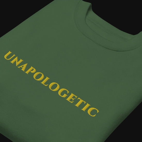 “Unapologetic” embroidered on the chest — for fearless authenticity.